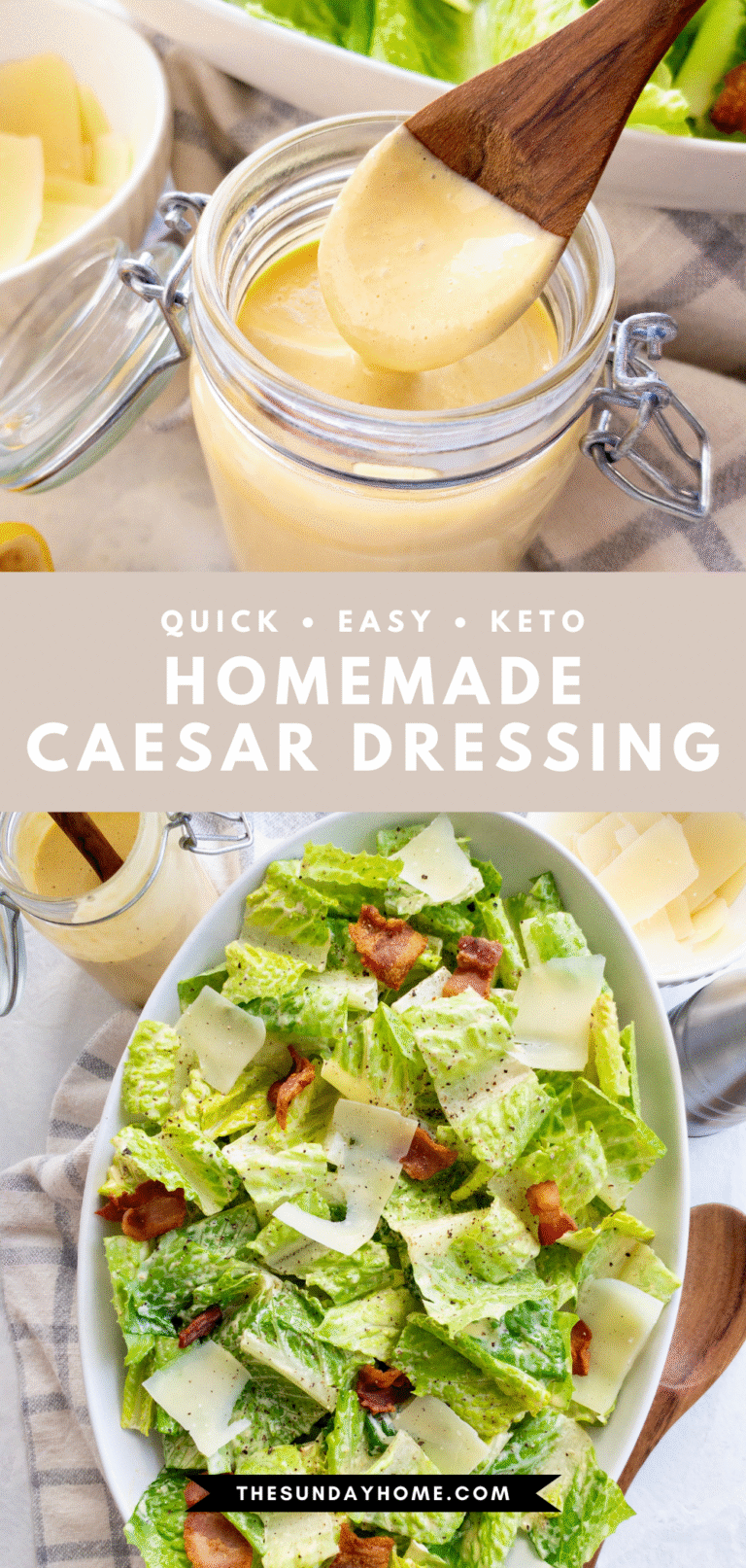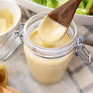 If you love Caesar Dressing with a little extra kick, this recipe is for you. It’s creamy, bright, and tangy, packed with punchy flavour from fresh garlic, lemon juice, and dijon mustard. Made the traditional way with egg yolk and oil, this keto-friendly Caesar dressing skips the mayo (and the anchovies!) and comes together quickly. Perfect for easy weeknight salads, everyday bowls, and make-ahead meal prep.